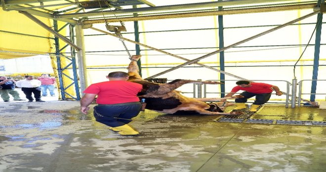 Kesilen boğanın bayramda çalışacak kasapların yemeklerinde kullanılacağı ifade edildi.