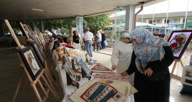 Akyazıda uzun yıllar görev yapan usta öğreticilerin el sanatları sergisi büyük ilgi görüyor.