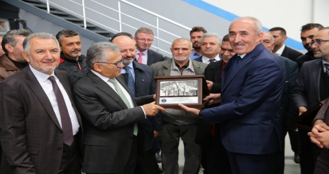 Oto Sanatkarlar sitesine yapılan hizmetlerden dolayı Oto Sanatkarlar Oda Başkanı Şeyhi Odakır esnafları dadına Melikgazi Belediye Başkanı Memeduh Büyükkılıça plaket takdim etti.