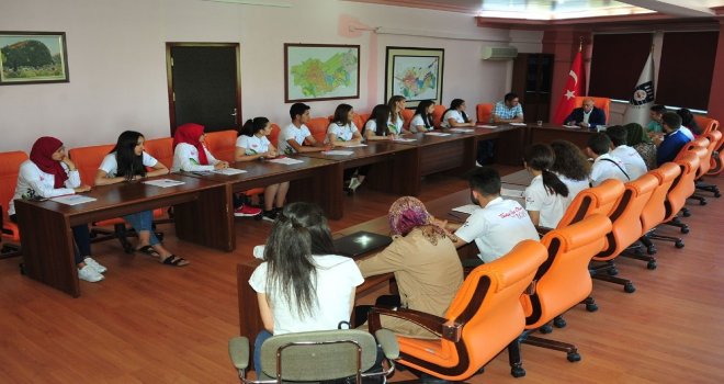Karamana 11 farklı ülkeden gelen yabancı uyruklu öğrenciler Belediye Başkanı Ertuğrul Çalışkanı ziyaret etti.