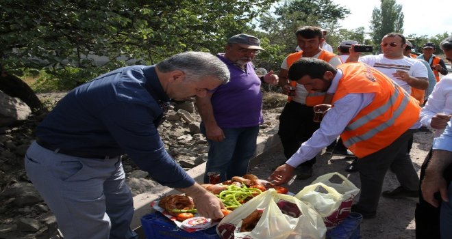 Büyükşehir Belediye Başkanı Çelik, sabah kahvaltısını da çalışanlarla birlikte yaptı. Çalışanlar için poğaça, simit ve kete alan ve bunları bizzat dağıtan Başkan Çelik, asfalt ekibinin odun ateşinde semaver ile demledikleri çayı da kendisi servis etti. Asfalt ekibi ile yapılan kahvaltıya Fen İşleri Daire Başkanı Ali Hasdalın bağdan getirdiği domates, biber ve üzümler de eklendi. Başkan Çelikin asfalt ekibi ile yaptığı kahvaltı renkli görüntülere sahne oldu.