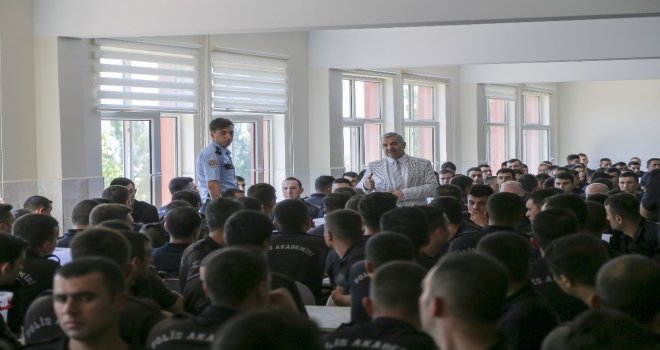 Büyükşehir Belediye Başkanı Mustafa Çelik, Kayseri Polis Meslek Eğitim Merkezini ziyaret ederek, polis adayları ile bir araya geldi.