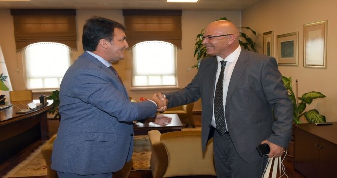 Osmangazi Belediyesinin kardeş belediyelerinden olan KKTCnin Mehmetçik Belediye Başkanı Cemil Sarıçizmeli, Başkan Mustafa Dündarı ziyaret etti.