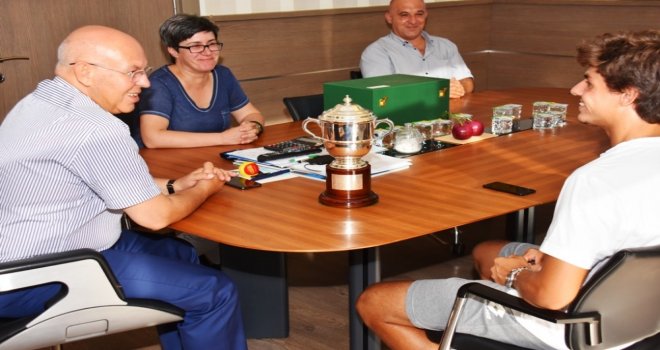 Tekirdağ Süleymanpaşa Belediye Başkanı Ekrem Eşkinat, Wimbledon Tenis Turnuvasında final oynayarak şampiyon olan ilk Türk tenisçi olma başarısını gösteren Tekirdağlı Yankı Ereli makamında misafir etti.
