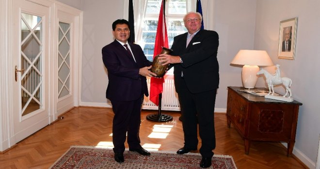 Büyükelçisi Martin Erdmannı Kemere davet ettiklerini vurgulayan Başkan Mustafa Gül, Görüşme sonrası kendisinin yanından ayrılırken, Genel Başkanımız Kemal Kılıçdaroğlunun yanına gideceğimi biliyordu ve ‘Bu konuştuklarımızı Kemal beye de anlatabilirsiniz dedi. Biz yola çıkmadan Kemere davetimizi kabul etti. Kendisini önümüzdeki 2 ay içerisinde Kemerde ağırlayacağız. Bu Kemerin ve turizminin daha da canlanması ve büyükelçinin Kemere gelmesi büyük bir olay. Kemer tarihinde ikinci defa bir Alman Büyükelçisi ilçemize gelecek. 2009daki büyükelçi ile de özel görüşmem vardı. Allahaısmarladık demek için Ankaradan Kemere gelmişti, veda yemeği vermiştik. İkinci defa bir büyükelçi Kemere gelecek diye konuştu.