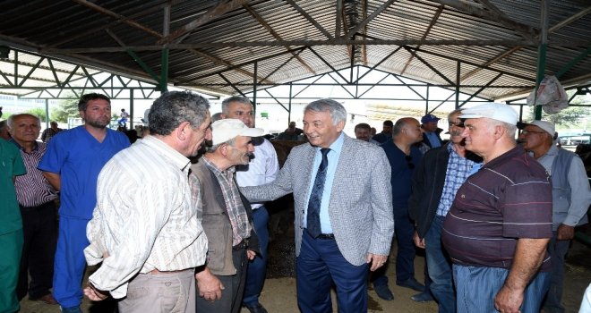 Isparta Belediye Başkanı Yusuf Ziya Günaydın, Yazısöğüt Köyünde bulunan belediyeye ait hayvan pazarında incelemelerde bulundu.