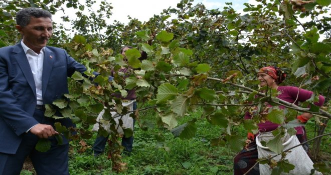 Kabadüz ilçesinde bir çiftçinin bahçesinden fındık toplayan Kabadüz Belediye Başkanı Yener Kaya, üreticilere işlerinde kolaylık ve bol kazançlar diledi.