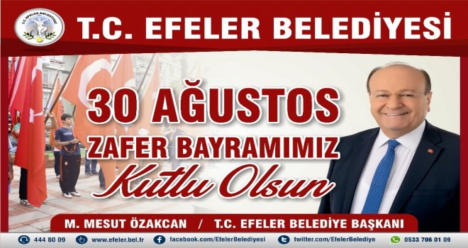 Efeler Belediye Başkanı M. Mesut Özakcan mesajında, ”Türk Milleti şanlı tarihinde bağımsızlık ve hürriyetine olan tutkusunu defalarca göstermiştir. Kurtuluş Savaşını tarihte eşi benzeri görülmemiş bir zaferle taçlandıran, her aşaması vatanseverlik, cesaret, fedakarlık ve feragat tabloları ile dolu 30 Ağustos Zaferi; Türk Milletinin, ordusu ile birlikte yüce Atatürkün önderliğinde yazdığı bir kahramanlık destanıdır. Türkiye Cumhuriyetinin temellerinin atıldığı bu destan, yüreğindeki vatan sevgisi ve üstün cesaretiyle milletini ve ülkesini kanının son damlasına kadar koruyan kahraman Türk askerinin kazandığı en büyük zaferdir. Türk Milleti şanlı tarihinde bağımsızlık ve hürriyetine olan tutkusunu defalarca göstermiştir. Birçok kahramanımız canı pahasına düşmanla savaşıp bağımsızlık ve özgürlük için kurtuluş ve bağımsızlık mücadelesi vermişlerdir. Kurtuluş Savaşı sırasında ortaya koydukları destansı mücadele örneğiyle topraklarımızı savunmuş, tarihimize şanlı bir direniş sayfası eklemişlerdir. Türkiye Cumhuriyetinin kurucusu Gazi Mustafa Kemal Atatürkün, silah arkadaşlarının ve şehitlerimizin bu vatan uğruna yaptıklarını sadece biz değil, bizden sonra gelen nesiller de unutmayacaktır. Kahramanca yurdunu savunan, başta Gazi Mustafa Kemal Atatürk olmak üzere tüm şehitlerimizi saygı, minnet ve rahmetle anıyor, kahraman gazilerimize ve ailelerine şükranlarımı sunuyorum. Şeref ve kahramanlık günümüz olan 30 Ağustos Zafer Bayramımızı en içten duygularımla kutluyorum” ifadelerini kullandı.