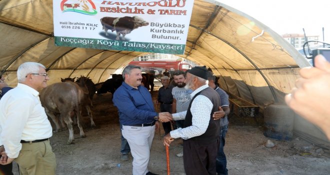 Talas Belediye Başkanı Dr. Mustafa Palancıoğlu, Kurban Bayramına sayılı günler kala ilçede kurulan kurban satış yerini ziyaret etti.