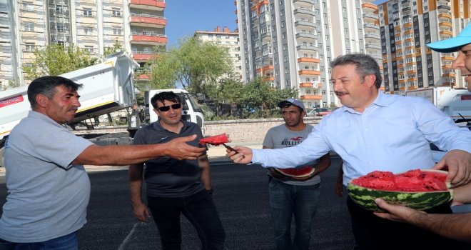 Başkan Palancıoğlundan Asfalt Ekibine Karpuz İkram Etti