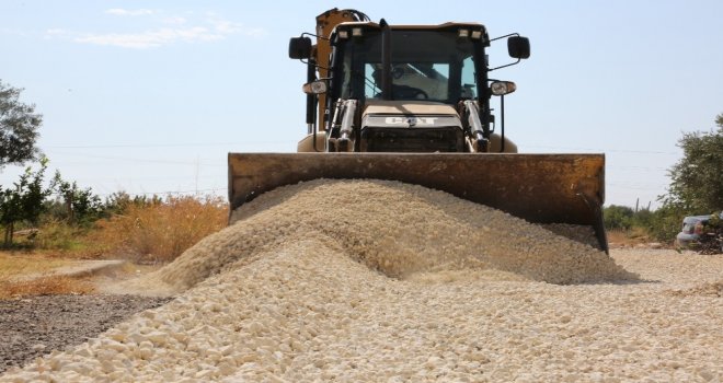 Mersinin Erdemli ilçe Belediyesinin Kızkalesi Mahallesinde yürüttüğü asfalt çalışmaları devam ediyor.