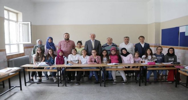 30 Ağustos Ortaokulunda TÜGVA Kütahya İl Temsilciliğinin açmış olduğu Yaz Okulunda eğitim gören öğrencileri ziyaret eden Saraçoğlu, sınıfları tek tek gezerek kursa katılan öğrencilerle sohbet etti.