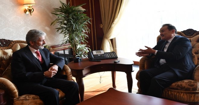 Türk Konseyi Genel Sekreterliği görevine başlayan Baghdad Amreyev, Ankara Büyükşehir Belediye Başkanı Mustafa Tunayı makamında ziyaret etti.