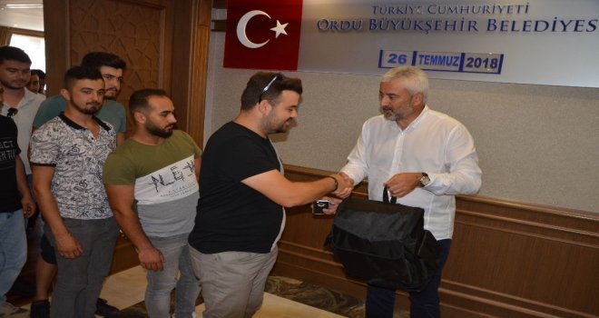 Ordu Büyükşehir Belediye Başkanı Enver Yılmaz, askere gidecek olan bir grup gence, içerisinde askerlik sürecinde gerekli olacak malzemelerin bulunduğu çanta hediye etti.