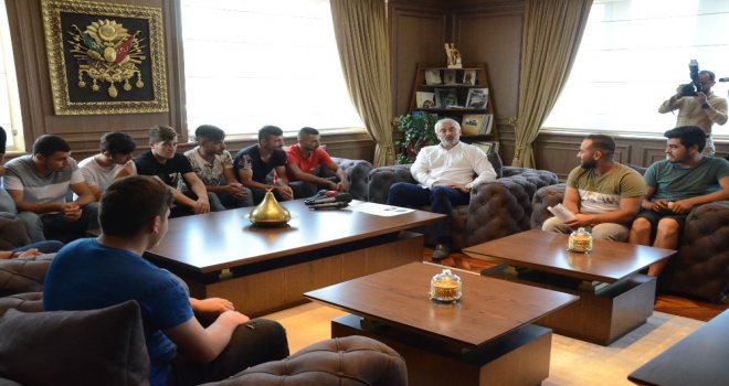 Ordu Büyükşehir Belediyesi tarafından, ‘Yolun Açık Olsun Askerim projesi kapsamında, sülüslerini alıp, eğitim birliklerine teslim olacak askerler, ilk olarak Başkan Enver Yılmazın makamına misafir oldu. Asker yolcuları ile teker teker görüşüp ‘hoşgeldiniz diyen Başkan Enver Yılmaz, onlarla bir süre sohbet edip, teselliler de verdi.