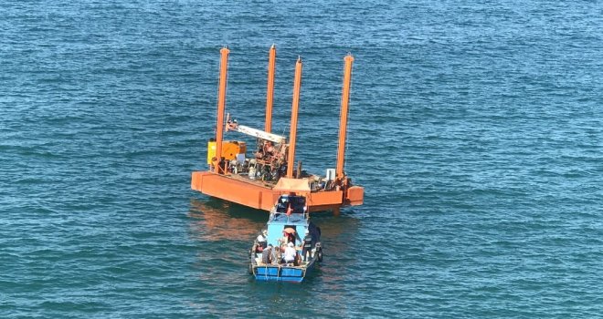 Düzcenin Akçakoca ilçesinde Karadeniz sahiline dalgakıran yapımı için zemin etütleri yapılarak çalışmalara başlandı.