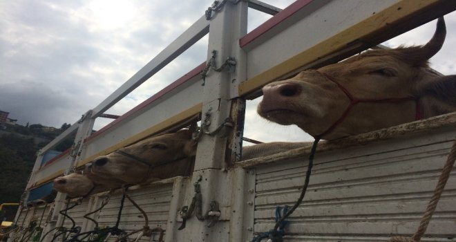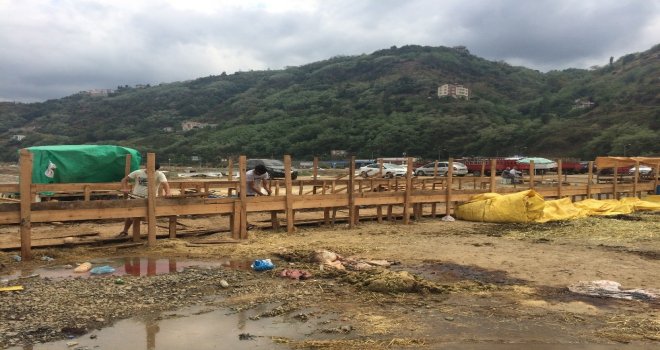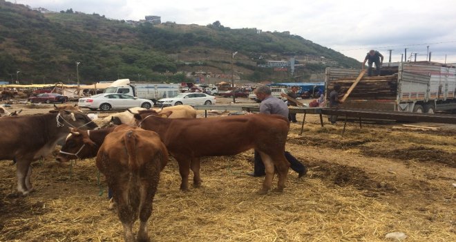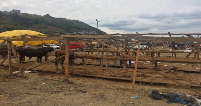 Trabzonun Akyazı mevkiinde kurulan kurban pazarına Türkiyenin farklı illerinden getirilen kurbanlıkların hemen hemen yarısı bayramın ilk gününde satıldı.