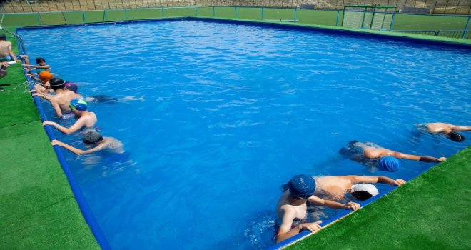 Beypazarı Belediyesi, gençlerin kişisel gelişimini sağlamak ve boş vakitlerini verimli hale getirmek amacıyla yapay havuzlarda profesyonel yüzme antrenörlerinin kontrolünde ücretsiz olarak yüzme eğitimi veriyor. İlk olarak geçen yıl faaliyete geçirilen yaz dönemi yüzme kursları kapsamında bin 200 çocuk yüzmeyi öğrendi. Bu yıl da Oğuzkent ve Gençlik Merkezinde açılan havuzlar ile 850 çocuk yüzme kurslarına devam ediyor.