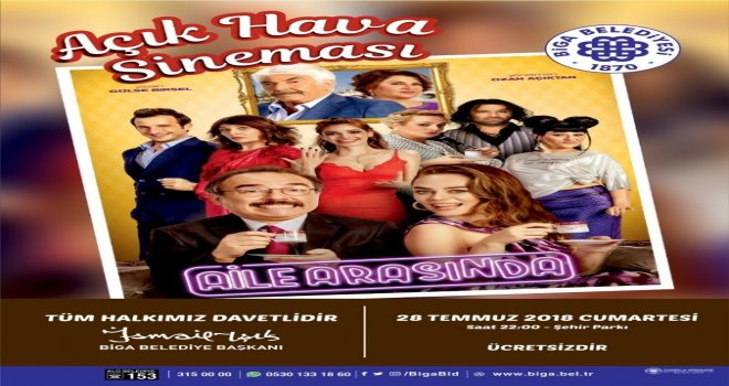 Biga Belediye Başkanı İsmail Işık, Bigalıların sıcak yaz günlerinde aileleriyle birlikte güzel zaman geçirebilecekleri bir etkinlik hazırladık. Açık Hava Sinemasında gösterilecek ilk film Aile Arasında. Başarılı ve ünlü oyuncuları kadrosunda barındıran bir film seçtik. İlgi göreceğini umuyorum. Önemli olan sevdiklerimizle bir arada olabilmemiz. Biz de sevdikleriyle bir arada olabilmeleri için, hemşehrilerimizin güzel zaman geçirebilecekleri etkinlikler gerçekleştiriyoruz. Sosyal belediyeciliğin her alanında iş üretmeyi önemsiyoruz. Geçmiş yıllarda evlerde, açık havada sinema salonlarında güzel zaman geçirirdik. Ailelerimizle birlikte sosyalleştiğimiz alanlardı bu salonlar. Yine o güzel zamanları birlikte yaşamak hepimize keyif verecektir. Tüm hemşehrilerimi nostalji tadındaki bu güzel etkinliğe davet ediyorum dedi.