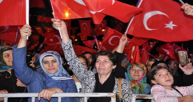 Yapılan konuşmaların ardından vatandaşlar Başkan Recep Tayyip Erdoğanın konuşmasını dinledi.
