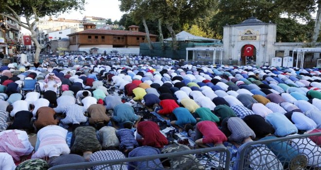Kurban Bayramı namazında binlerce vatandaş Eyüp Sultan Camiini doldurdu. Bayram namazına katılım yoğun olurken caminin içinin dolmasıyla vatandaşlar avluda hasırlar üzerinde bayram namazını kıldı. Namaz sonrası vatandaşlar birbirleriyle bayramlaşarak iyi dileklerde bulundu.