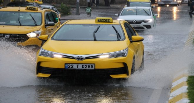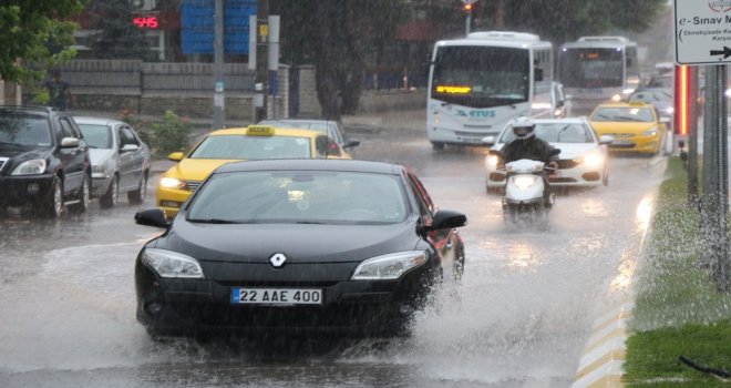 Edirnede, öğleden sonra bir anda bastıran şiddetli sağanak hayatı olumsuz etkiledi. Kent merkezinde cadde ve sokaklar kısa sürede adeta göle döndü.