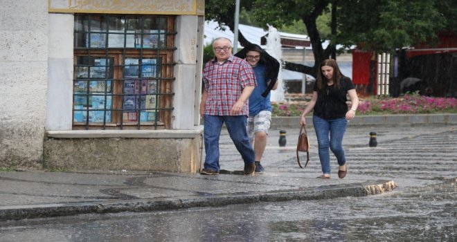 Meteoroloji yetkilileri, kuzeyden gelen hava dalgasının kısa sürede yağmura neden olduğunu, sıcaklığın 25 derece ölçüldüğü kentte sağanağın aralıklarla devam edeceğini bildirdi.