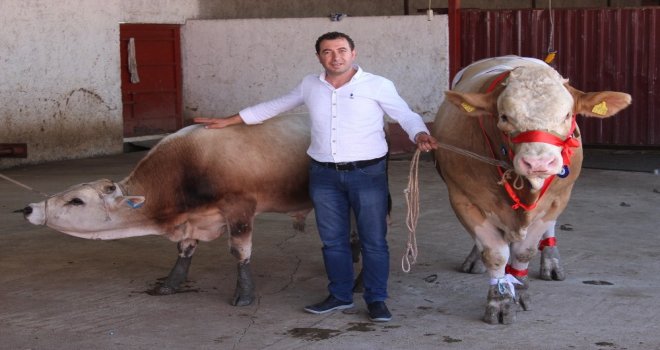 Kral isimli boğasıyla ilgili bilgiler veren Leblebiciler, Simental ırkı olduğu için etçildir bu hayvanlar ve uysal bir hayvandır. Diğer ırklara göre en uysal ırklardan bir tanesidir. Özelliği etçi olmasıdır. Etin kalitesiyle, etin verimliliğiyle, etin randımanıyla nam yapmış bir dana ırkıdır. Buda onlardan, orijinal, kaba, 1 ton 170 kilogram ağırlığında bir danamızdır. Bizim 25 ay beslediğimiz bir danamızdır. Kurban Bayramı için satışta bugüne kadar göstermemiştik ama bundan sonra gösteriyoruz artık. Eğer kısmeti çıkarsa satılacak. Kısmeti çıkmazsa da rekora gidecek. 1 buçuk ton inşallah hedefimiz. Bu danamızın satış fiyatı şu an 25 bin TL. Dediğim gibi kısmeti çıkarsa satacağız, çıkmazsa Ocak-Şubata kadar rekora gideceğiz inşallah. Yüzde yüz organik bir hayvanımızdır. Kesinlikle küspeyle beslemiyoruz. Fenni yem slaj ve balya, fi tarzında besi yemiyle besliyoruz. Dediğim gibi etçil bir ırk olduğu için her geçen gün canlı ağırlık olarak 2 buçuk-3 kilogram et alan bir ırkımız, hayvanımız. Her gün üzerine koyarak devam ediyor. Karkas olarak da yüzde 60 randıman verir. 700-710 kilogram arası karkas olarak et bu danadan çıkmış olacak inşallah. Boy uzunluğu 1 buçuk metre, en uzunluğu da yaklaşık olarak 2.20. Rekor Kral danamızda diye konuştu.