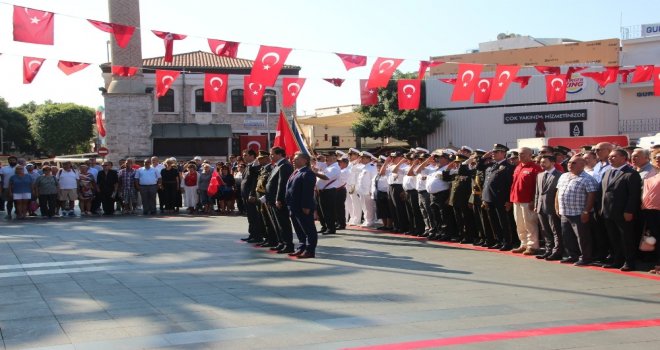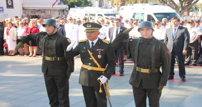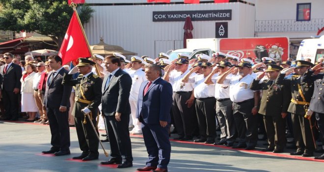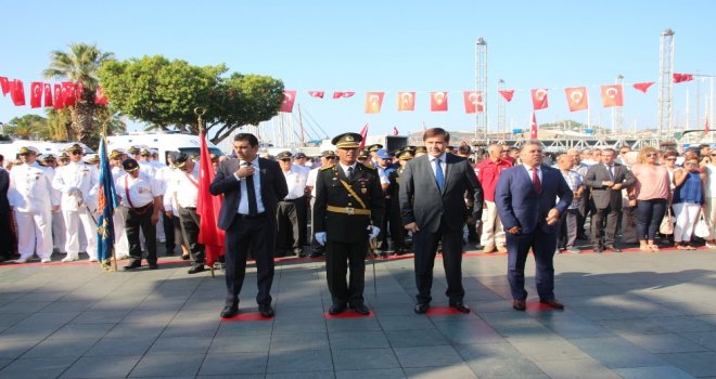 Bodrum Belediye Meydanındaki törene Bodrum Kaymakamı Bekir Yılmaz, Bodrum Belediyesi Başkan Vekili Taner Uslu, Bodrum Cumhuriyet Başsavcısı Şükrü Aslan, Bodrum Garnizon Komutanı Personel Albay İzzet Adagideli, İlçe Emniyet Müdürü Cüneyt Yörükoğlu, daire amirleri, oda başkanları, siyasi parti temsilcileri, gaziler, öğrenciler ve çok sayıda vatandaş katıldı.