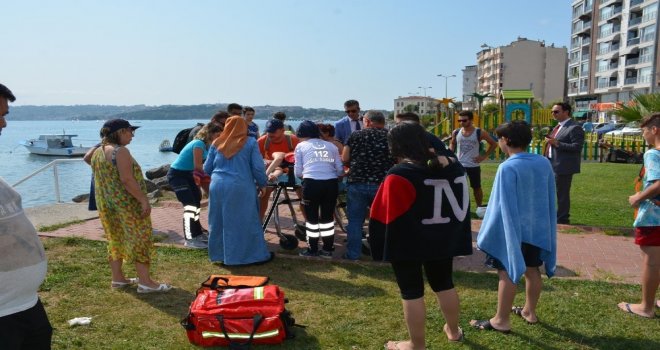 Olay, 15.00 sıralarında Enver Bahadır Caddesi sahilinde meydana geldi. Serinlemek için denize giren 58 yaşındaki Oya Yiğit, su üzerinde hareketsiz halde yatarken vatandaşların dikkatini çekti. Yiğitin hareketsiz halini gören vatandaşlar denize girerek ona müdahale etti. Kadın, vatandaşlar tarafından kıyıya çıkarıldı. Haber verilmesi üzerine olay yerine gelen 112 sağlık görevlileri kadına sahilde ilk müdahaleyi yaptı. Yiğit ilk müdahalenin ardından sağlık ekiplerince Sinop Atatürk Devlet Hastanesine kaldırıldı, oradan da Samsunun Bafra ilçesindeki özel bir hastaneye sevk edildi.