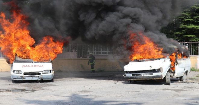 Boluda 2 Aracın Alev Alev Yandığı Tatbikat Gerçeğini Aratmadı