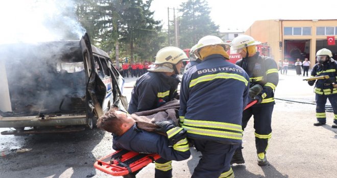 Boluda 4 gündür devam eden itfaiye ekiplerine yönelik eğitimlerin sonunda düzenlenen tatbikat gerçeğini aratmadı. Alev alev yanan araçları söndüren ekipler, yaralıları kurtarmak için zamanla yarıştı.