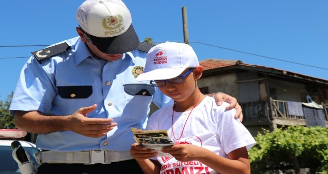 Proje kapsamında D-100 Karayolu üzerinde uygulama noktası oluşturan trafik ekipleri, durdurdukları araçlardaki çocuklara kırmızı düdük, tişört ve broşür vererek, sürücüleri hatalı davranışlara karşı uyarmalarını istedi.