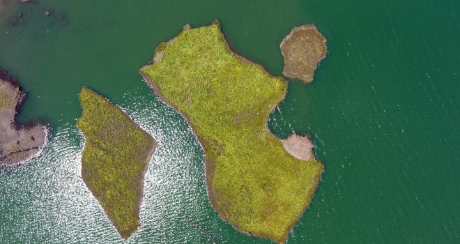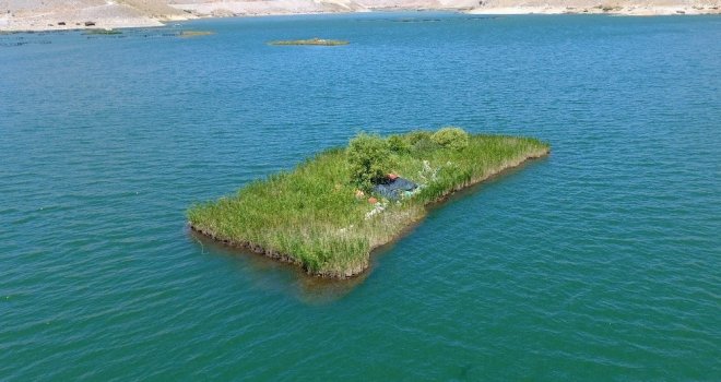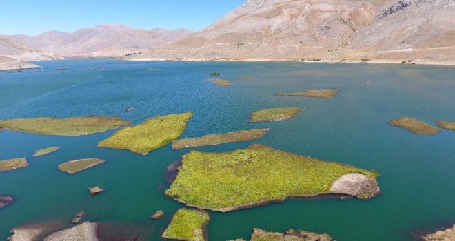 Adıyamanın Çelikhan ilçesindeki Çat Baraj göleti üzerinde binlerce yılda meydana gelen yüzen adacıklar sürekli yer değiştiriyor.