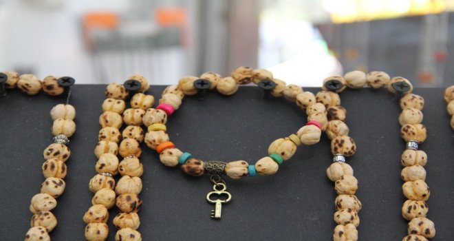 Çorumda leblebili un, leblebili kebap ve leblebili kurabiyenin ardından şimdide leblebiden tespih ve bileklik tasarlandı.