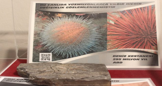 Fosil sergisinde yer alan 5 ila 350 milyon yıllık canlı fosilleri, hayatın 350 milyon yılda değişmeden günümüze kadar geldiğini gösteriyor. Sergide nesli 350 milyon yıl önce yok olan trilobit fosili de sergileniyor.