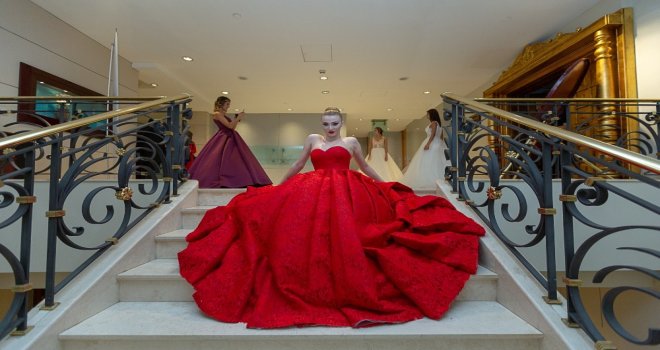 Cumhuriyet Balosu etkinliği kapsamında gerçekleşen Cumhuriyet Defilesinde mankenler podyuma çıkarak kırmızı ve beyaz tasarımları tanıttı.