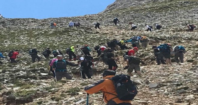 Faaliyet boyunca 22 kilometre yürüyen dağcılar, zirvede hatıra fotoğrafı çektirirken, Türkiye Dağcılık Federasyonu tarafından etkinliğe katılanlara sertifika verildi.