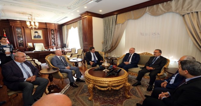 Bursa Valisi İzzettin Küçükün Kızılay Genel Başkanı Kerem Kınıka seramik işlemeli çini hediye etmesi ile ziyaret basına kapalı olarak devam etti. Kızılay Bursa Şube Başkanı Davut Gürkan ve ekibi de toplantı da hazır bulundu.