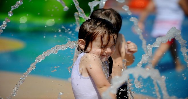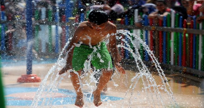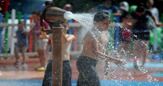 Açılışın töreninin ardından Su Oyunları Parkına giren çocuklar, suyla oynamanın keyfini doyasıya yaşadı.