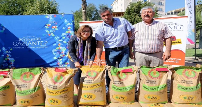 Çiftçiyi destekleme projesi kapsamında Araban ilçesinde 320 çiftçiye arpa ve buğday tohumu dağıttı. Toplamda 100 ton buğday tohumu 60 ton da arpa tohumu dağıtan Büyükşehir Belediyesi, buğday ve arpa ekiminde verimlilik oranını arttırıyor. Arabanda Recep Tayyip Erdoğan Parkı içerisinde düzenlenen törende çiftçilere seslenen Büyükşehir Belediye Başkanı Fatma Şahin, tarımda toprak ve suyun çok önemli olduğunu, bu ikisini çok iyi bir şekilde işlenmesi durumunda gelecekte daha iyi bir toplum olunacağını söyledi. Gelecekte stretejinin petrol, maden toprak ve su üzerine olacağını ifade eden Şahin, bu açıdan suyun kendiler için çok önemli olduğunu kaydetti.
