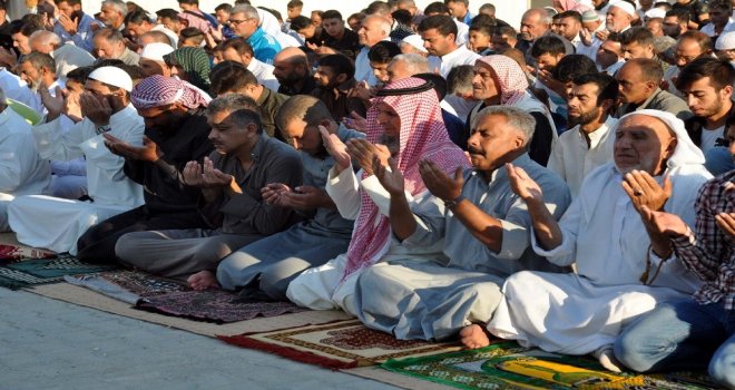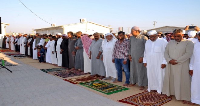 Şanlıurfanın Akçakale ilçesi geçici barınma merkezinde yaşayan Suriyeli sığınmacılar bayram namazı kıldı. Bayram namazında hüzün ve gözyaşı vardı.