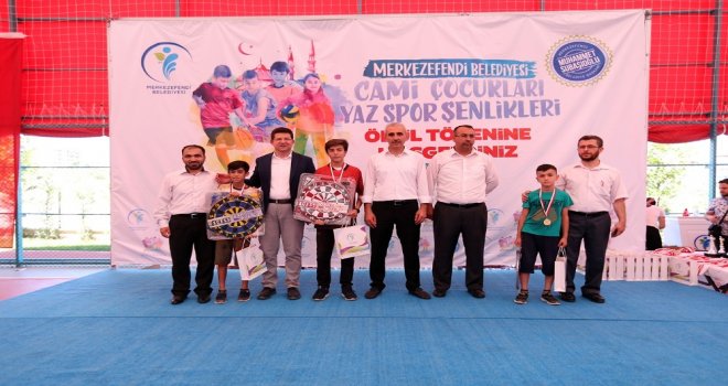 Denizli Merkezefendi Belediyesi tarafından ilçede bulunan camilerde yaz kurslarına katılan çocuklar için ‘Cami Çocukları Yaz Spor Şenlikleri adıyla düzenlenen spor oyunlarında kupa töreni gerçekleştirildi.