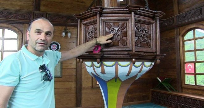 Köy tüzel kişiliğine kayıtlı caminin 165 yıllık geçmişe sahip olduğunu ifade eden Bayram, Gürcistan sınırına yaklaşık 3 kilometre mesafede bulunan ve büyük bölümü ahşaptan yapılmış caminin, minber, kapı ve diğer bazı bölümlerinde çeşitli motifler ve kök boyası kullanıldığını belirtti.