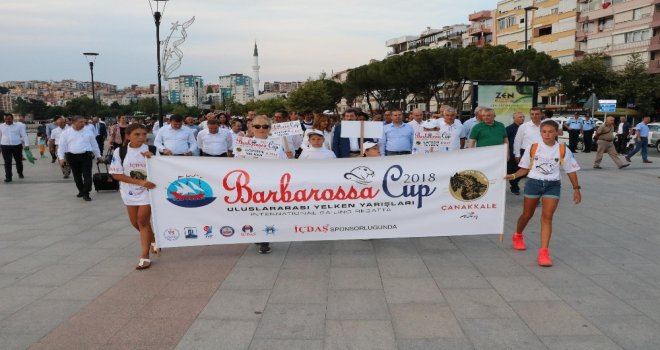 Çanakkalede, 2018 Troya Yılı etkinlikleri kapsamında düzenlenen Uluslararası Barbarossa Cup Yelken Yarışları için Kordon Boyunda kortej yürüyüşü gerçekleştirildi.