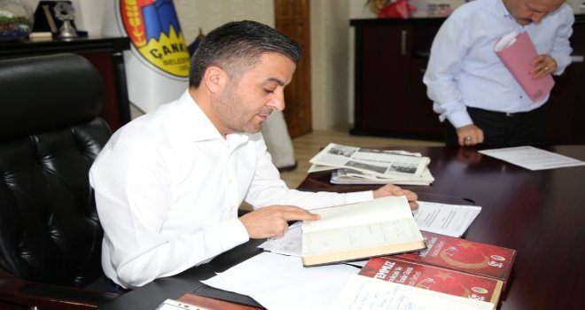 Çankırı Belediye Başkanı Hüseyin Boz, 15 Temmuz Demokrasi ve Milli Birlik Günü etkinlikleri kapsamında vatandaşların duygu ve düşüncelerini yazdıkları 15 Temmuz Hatıra Defterlerini inceledi. Başkan Boz, 15 Temmuz Hatıra Defterlerinde yazılan samimi duyguların Çankırı Belediyesi arşivinde saklanarak tarihe not olarak düşüleceğini kaydetti.
