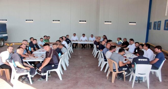 Yenişehir Belediye Başkanı Süleyman Çelik, BUSKİ Şube Müdürlüğünü ziyaret ederek, işçilerle birlikte kahvaltı yaptı.