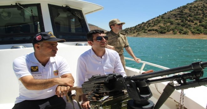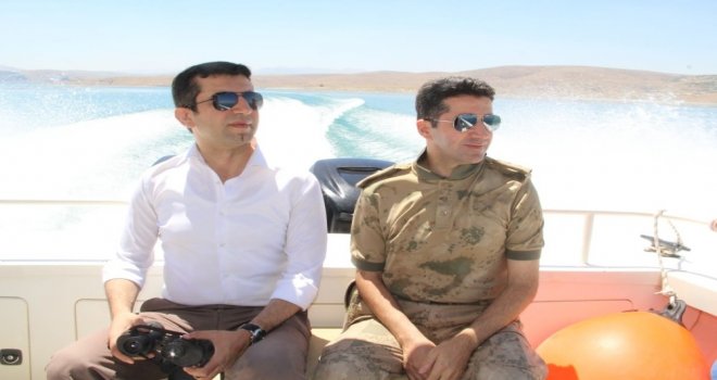 Tuncelinin Çemişgezek ilçesi Kaymakamı Harun Kazez, kıyı güvenliği amacıyla Keban Baraj Gölünde inceleme yaptı.
