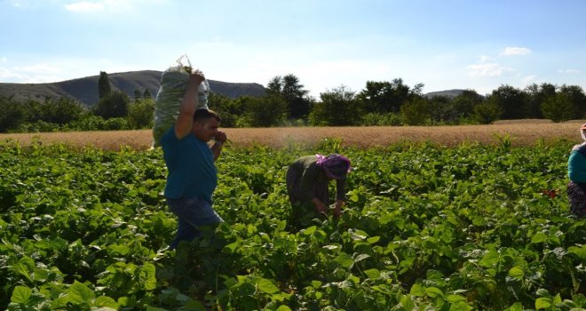 Afyonkarahisarda patatesten geçen sene zarar eden üreticiler, bu sene üretimine ağırlık verdikleri fasulyenin hasadına başladılar.