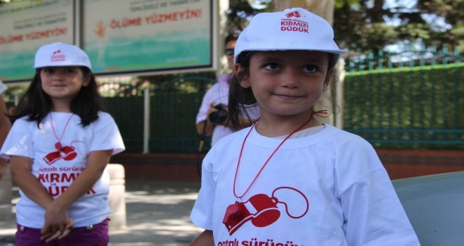 İçişleri Bakanlığı Emniyet Genel Müdürlüğü tarafından trafik kurallarını ihlal eden sürücülere karşı başlatılan ‘Hatalı Sürücüye Kırmızı Düdük Kampanyası kapsamında Konyada ebeveynleriyle seyir halinde olan çocuklar trafik polisi seçilip hediye edilen tişört ve kırmızı düdükle görevlerine başladı.